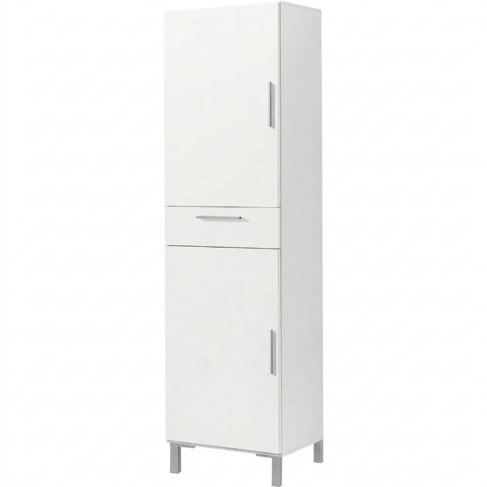 Este armario lateral es práctico y ayuda a organizar el hogar. Su diseño vertical optimiza el espacio y cuenta con una puerta superior para objetos poco usados, un cajón central para los artículos pequeños o de uso diario, y una puerta inferior con espacio amplio para almacenamiento. Sus dimensiones compactas lo hacen adecuado para cocinas, baños, lavanderías o pasillos, adaptándose fácilmente a cualquier esquina. Fabricado con materiales duraderos y fácil de mantener.
