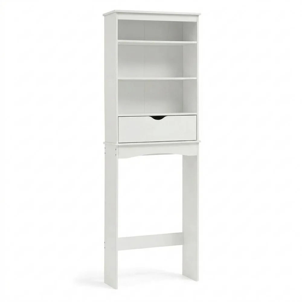 Dimensiones: 56 cm (Ancho) × 24 cm (Fondo) × 167 cm (Alto). El ancho está diseñado para adaptarse a la mayoría de los inodoros estándar, maximizando el uso del espacio vertical en los baños. Ofrece 3 estantes abiertos que utilizan el espacio vertical eficientemente, proporcionando espacio para toallas y artículos de baño. Este diseño mantiene las encimeras organizadas y los artículos diarios accesibles. Incluye un cajón con asas recortadas, ideal para almacenamiento discreto de artículos pequeños como productos de tocador y cosméticos. Con herrajes anti-vertido que fijan el armario a la pared, previniendo volcaduras accidentales. Este mueble puede colocarse sobre inodoros, lavadoras en despensas o como unidad de almacenamiento en otros espacios. Su diseño alto y estrecho es adecuado para lugares pequeños.