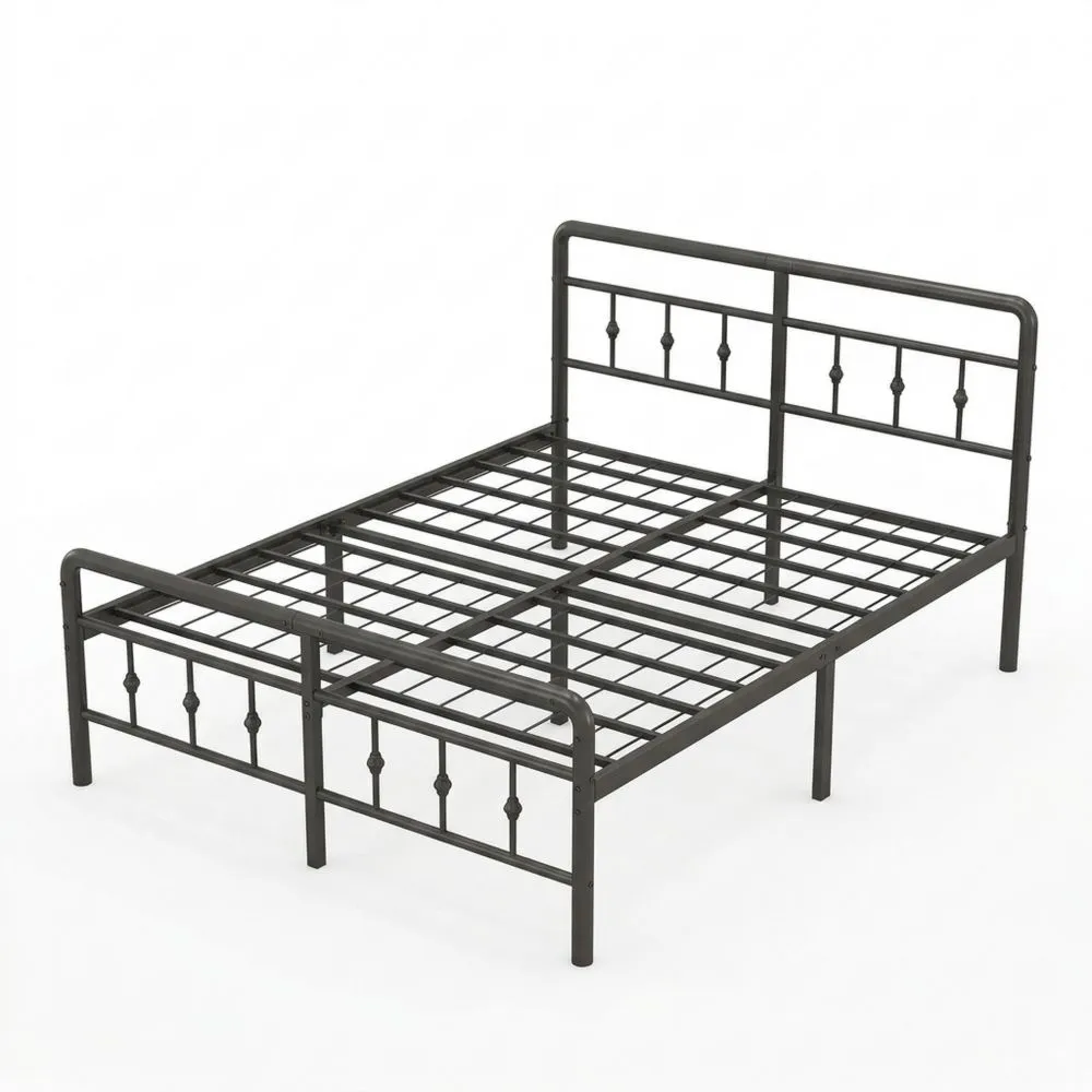 Diseño de estilo victoriano: La cama con cabecera y pie mantiene el colchón en su lugar, con un diseño que complementa la habitación. Base estable: Cama de metal con lamas de acero, estructura estable sin tambaleo ni ruido, soporta hasta 400 kg de capacidad de carga. Diseño duradero: El marco de la cama de 190cm x 150cm x 36cm es compatible con colchones de 150x190cm, las lamas de acero soportan distintos tipos de colchón. Espacio de almacenamiento: La cama cuenta con espacio debajo para almacenar objetos adicionales, ayudando a mantener la habitación ordenada. Montaje sencillo: La cama de metal negra incluye todas las piezas necesarias con instrucciones detalladas para facilitar el montaje.